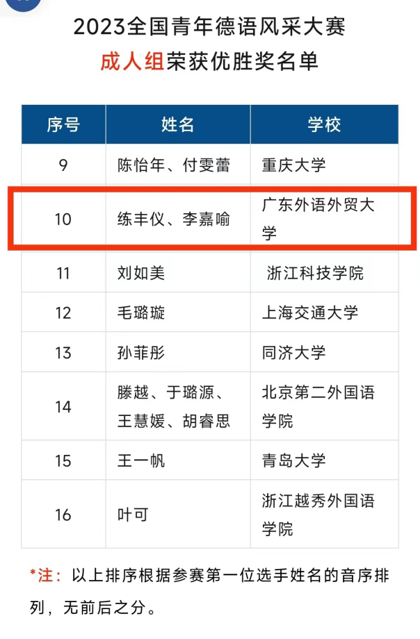 德语系练丰仪同学、李嘉喻同学从全国500名选手、151支队伍中脱颖而出,荣获成人组优胜奖(第9-16名)。