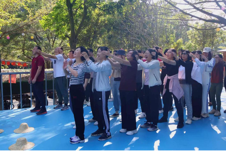 24日13:30,老师们准时集合,坐上大巴车,来到了白云山脚下的帽林营地。团建活动在轻松愉快的热身活动中拉开序幕。在趣味数学互动环节中,大家争先恐后,积极抢答,气氛热烈。同事们相互摸头鼓励,按摩肩膀,舒活筋骨。笑容在绽放,温度在上升,心与心的距离在慢慢靠近。