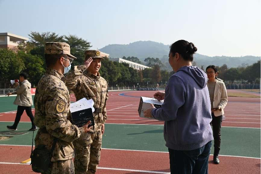 学院领导为新生们发放了慰问品。收到学院的关心与鼓励,新生们的脸上洋溢着喜悦与自豪。他们纷纷表示,一定会将这份关爱转化为动力,以更加饱满的热情投入到接下来的军训中。