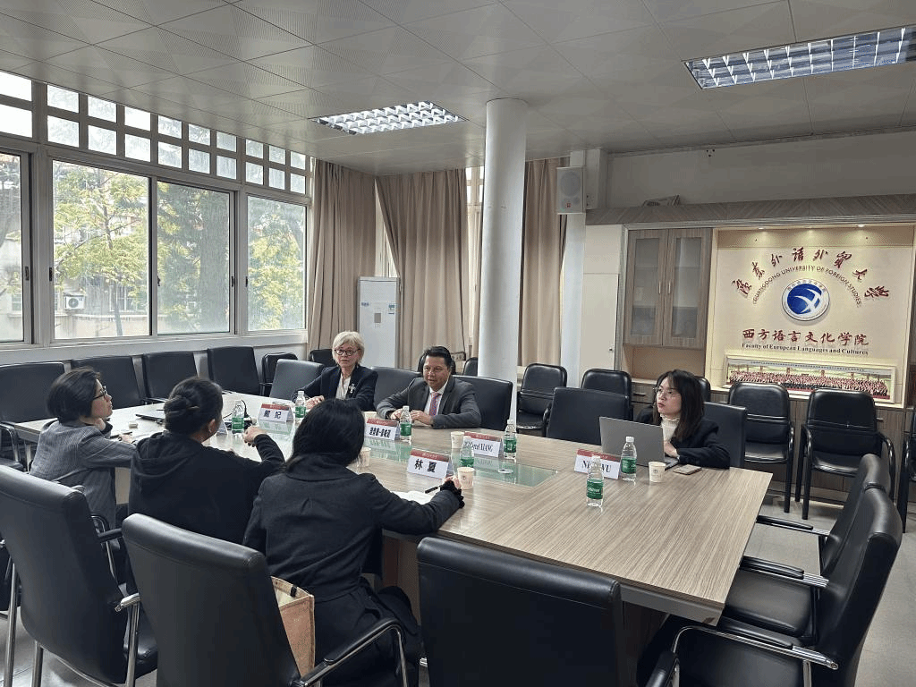 在座谈会上,杨晓敏院长向法方代表介绍了广外的历史,并详细介绍了金宝博