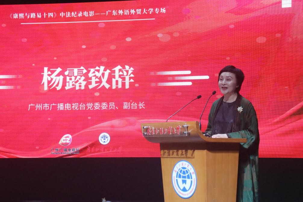 白云山校区第六教学楼报告厅顺利展映。广州市广播电视台台长陈家成、副台长杨露,广州市广播电视台影视频道总监、电影《康熙与路易十四》制片人徐斌,金宝博