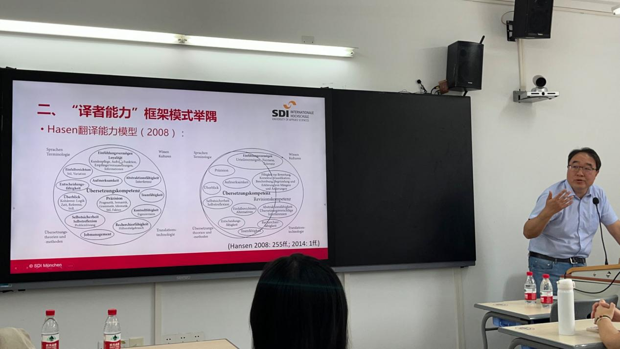 讲座围绕“‘译者能力’概念认识的发展”、“‘译者能力’框架模式举隅”、“德国翻译人才的培养体系”、“翻译专业的课程设置:案例与反思”、“翻译行业与翻译培养的未来”五个方面展开。