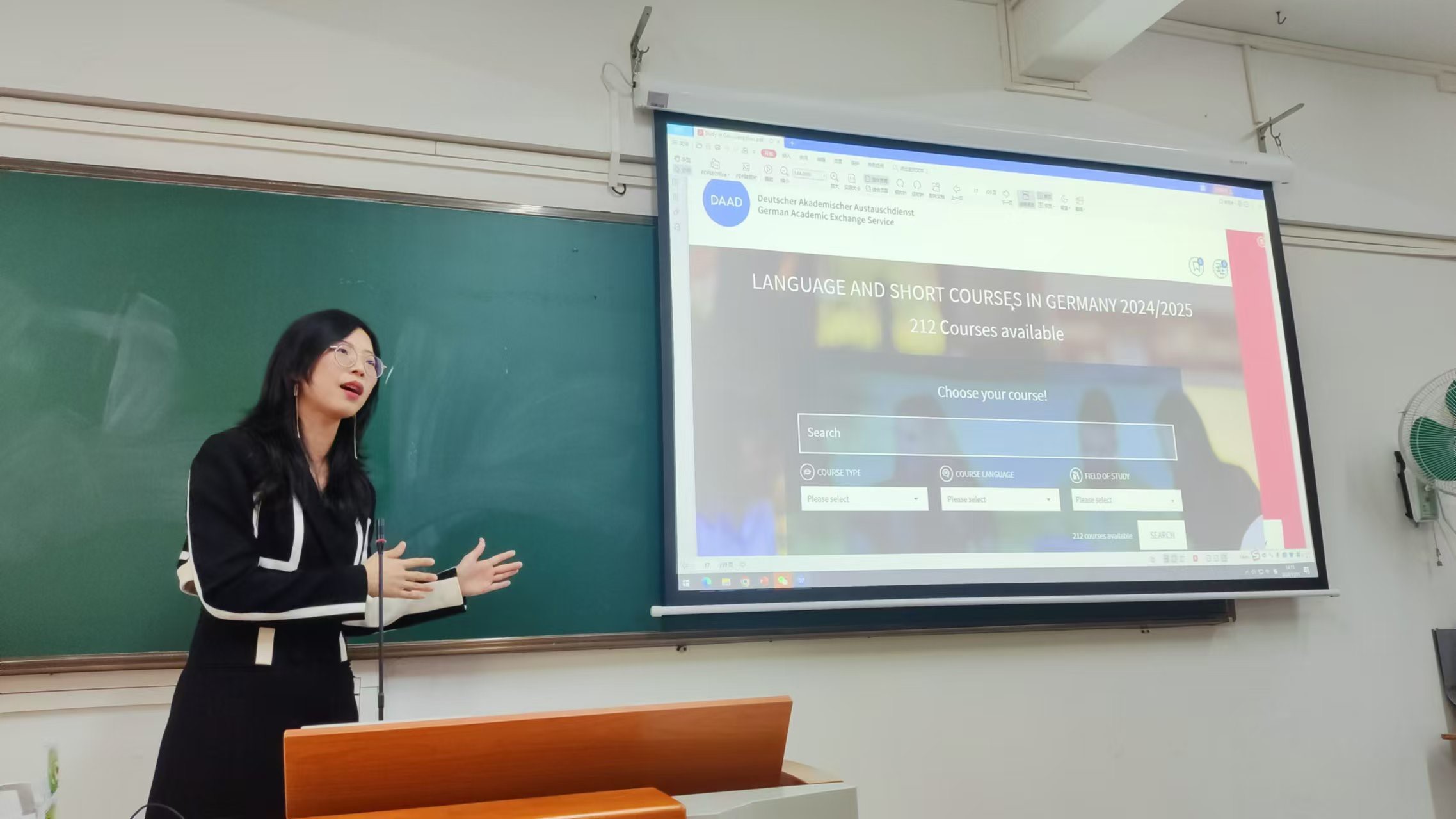 研究生院特邀德国学术交流中心(DAAD)广州代表处,携德国科隆大学与拜罗伊特大学举办留学德国主题宣讲会。本次宣讲会吸引到全校60余名学生到场聆听,由DAAD广州代表处李文爱老师、拜罗伊特大学上海代表处陈怿雯老师与科隆大学北京代表处邱岚老师主讲,德语系主任吴晓钢老师主持。