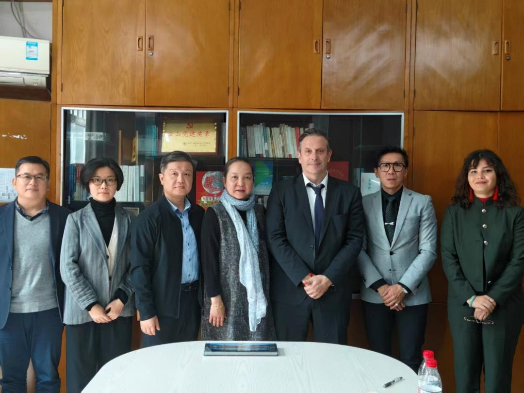 代表团由负责欧洲事务、国际关系及法语国家事务的副校长曼努埃尔·乔伯特(Manuel JOBERT)教授,国际关系部亚洲部行政主任、法语国家亚洲区域执行主任杨啸先生,以及国际关系法语国家事务项目负责人、前法国驻华使馆官员塞莉亚·霍阿鲁(Celia HOARAU)女士等一行三人组成。