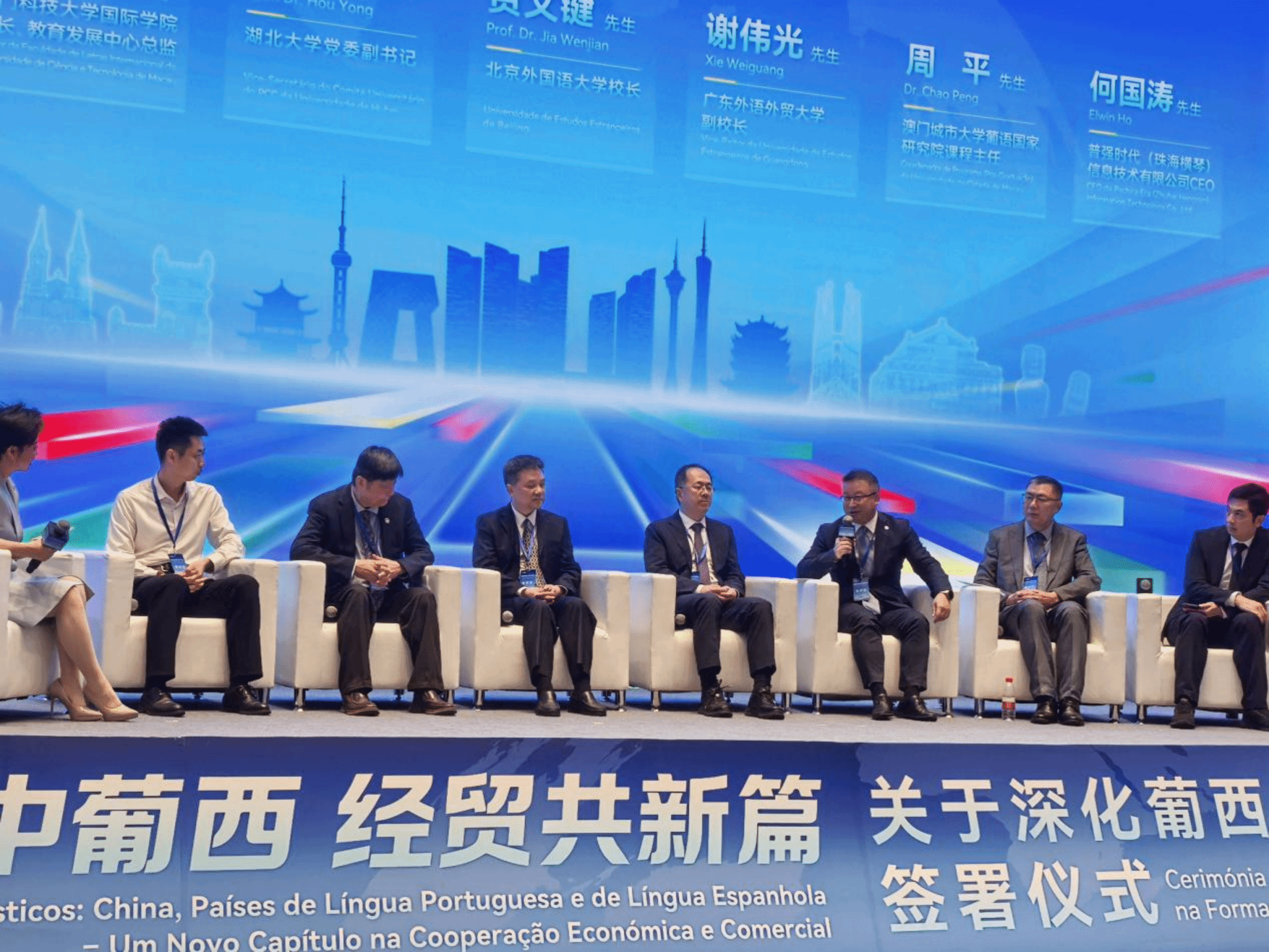 副校长谢伟光受邀到珠海横琴参加由横琴粤澳深度合作区组织、中国—葡语(西语)国家经济贸易服务中心(以下简称“中葡经贸中心”)主办的关于深化葡西语人才培养合作倡议的签署仪式。本次活动旨在联动政府、高校、企业三方力量,深化葡西语人才培养机制创新,拓宽复合型外语人才发展通道。金宝博