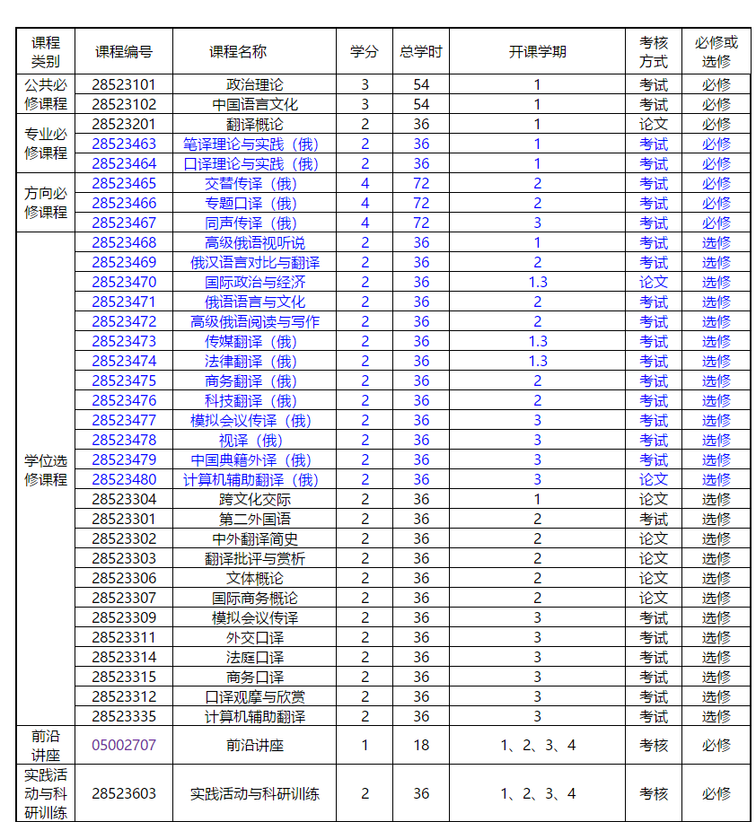 高级翻译学院(俄语)翻译硕士专业学位研究生培养方案原则上按照二级学科制订。在遵循翻译学专业研究生教育一般规律的基础上,根据专业学位教育的特点,借鉴、吸收国外高层次翻译专门人才培养的有益经验,紧密结合我国国情,我省省情,特别是结合我国翻译实践领域的实际情况,积极探索具有我国特色的俄语翻译硕士专业学位研究生教育制度。培养方案包括:培养目标、研究方向、培养模式及学习年限、课程设置及学分、培养计划制定及培养环节、培养方式、培养方案的审批、执行与检查等内容。根据《中华人民共和国学位条例》和国务院学位办翻译专业研究生教育指导委员会所颁布的《全日制翻译硕士专业学位研究生指导性培养方案》(MTI2009【10】)以及大学研究生部的有关规定,结合俄语专业的实际情况,特作如下规定: |