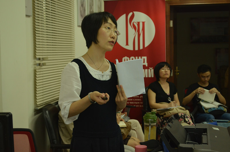 主讲人法语系博士张向荣以“女性主义:后学语境及其主体意识——20世纪80年代以来西方学界的前沿进展”为题展开研究。首先,她在绪言中导出女性主义从传统对抗发展到现代重构,从单向度批判到多元化思考,形成了新型的女性主义文论思维。之后把内容分为三个部分阐述:批判消费主义走出边缘化、培植女性话语构建性别诗学以及跨文化视野。张向荣博士收集了多位国内外学者的理论和文献来支撑其论点,在场各位不时低头记笔记,不时点头深思,获益匪浅。